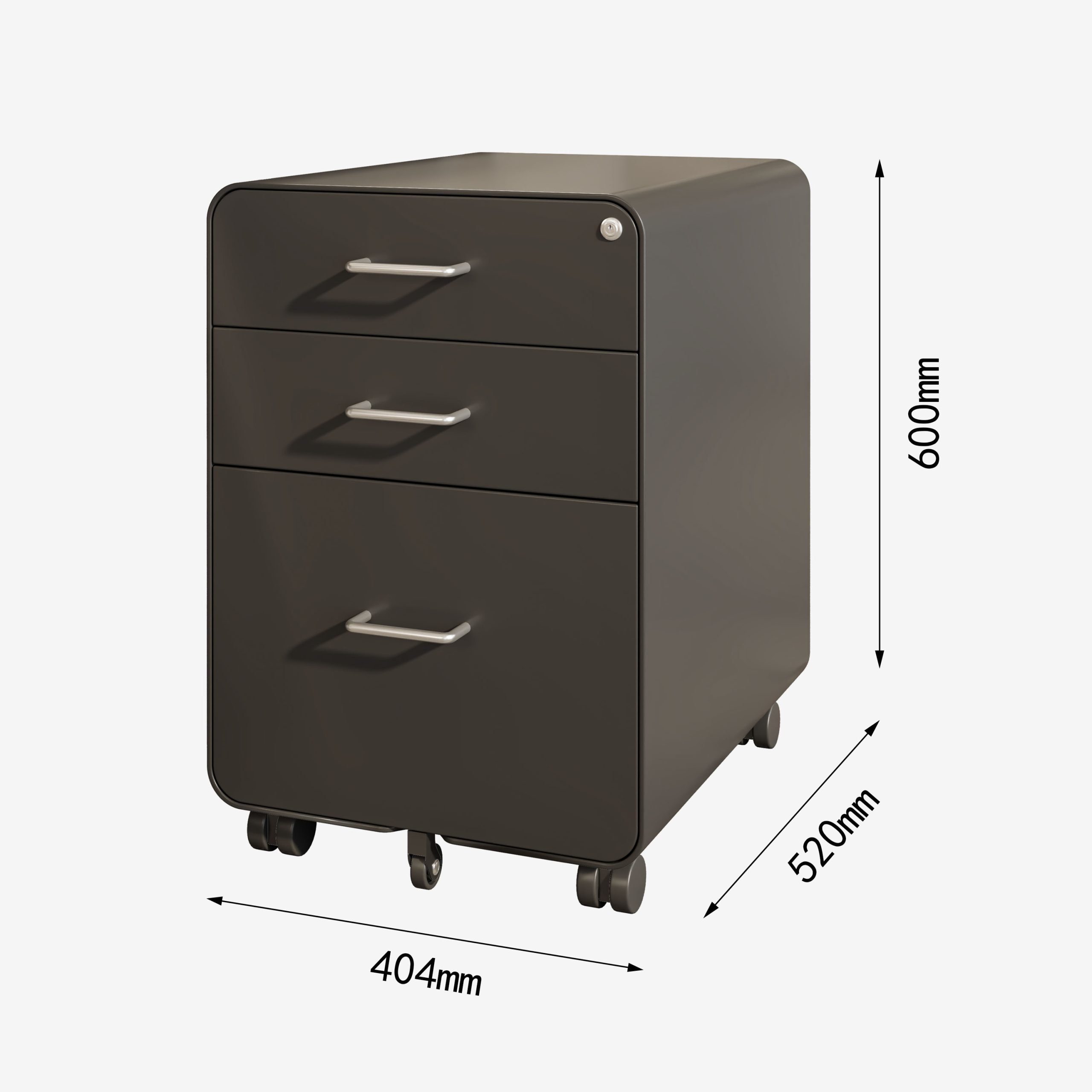 Mobile pedestal cabinet have 2 small stationery drawers and 1 large, the first drawer contains an adjustable pencil tray. Handle design options have swanneck handle, pull side handle, embedded handle, etc. Each tier equipped with 2 keys; 4 universal wheels with an anti-tilit wheel keep pedestal movable and prevent tipping over;organize your stuff simply & easily.