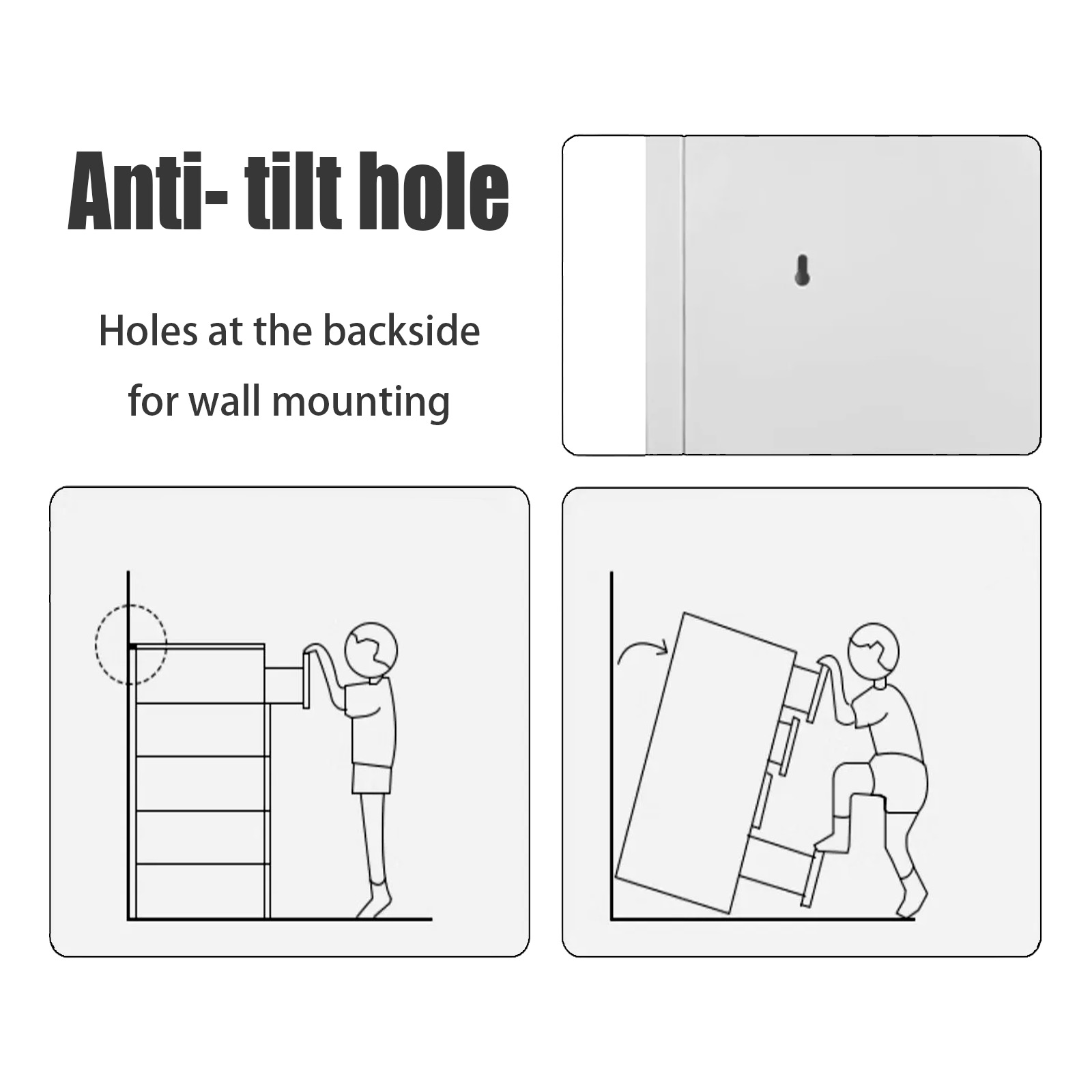 Designed with an anti-tilt system to allow only one drawer open at a time, preventing tipping over. Ensures the safety and security of your important documents; Non-inter locking device design, multiple drawers can be opened at once, the back of the drawer needs to be fixed with expansion screws on the wall to ensure safe use.