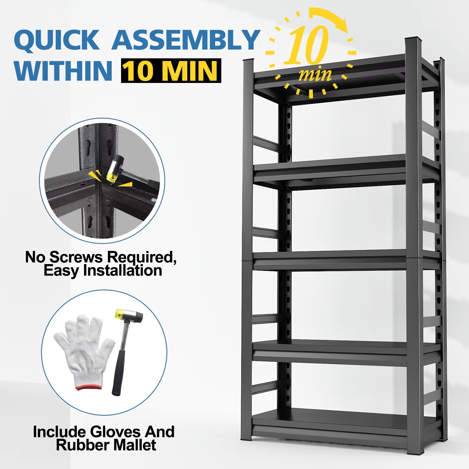 Our storage shelves incorporates an advanced click-and-lock system, easy to put together streamlining assembly and no need for bolts, screws, or nuts. Simply follow the detailed instructions for rapid setup.