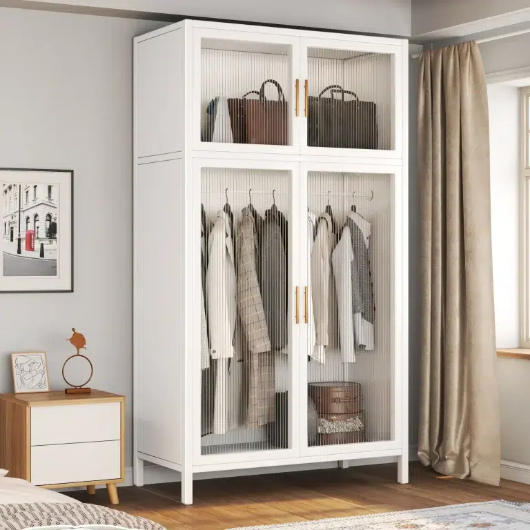 The clothes wardrobe as knock down structure, you can install all pieces of steel plate. As the same time, we can provide the installation video and guideline. It’s easy to installation.