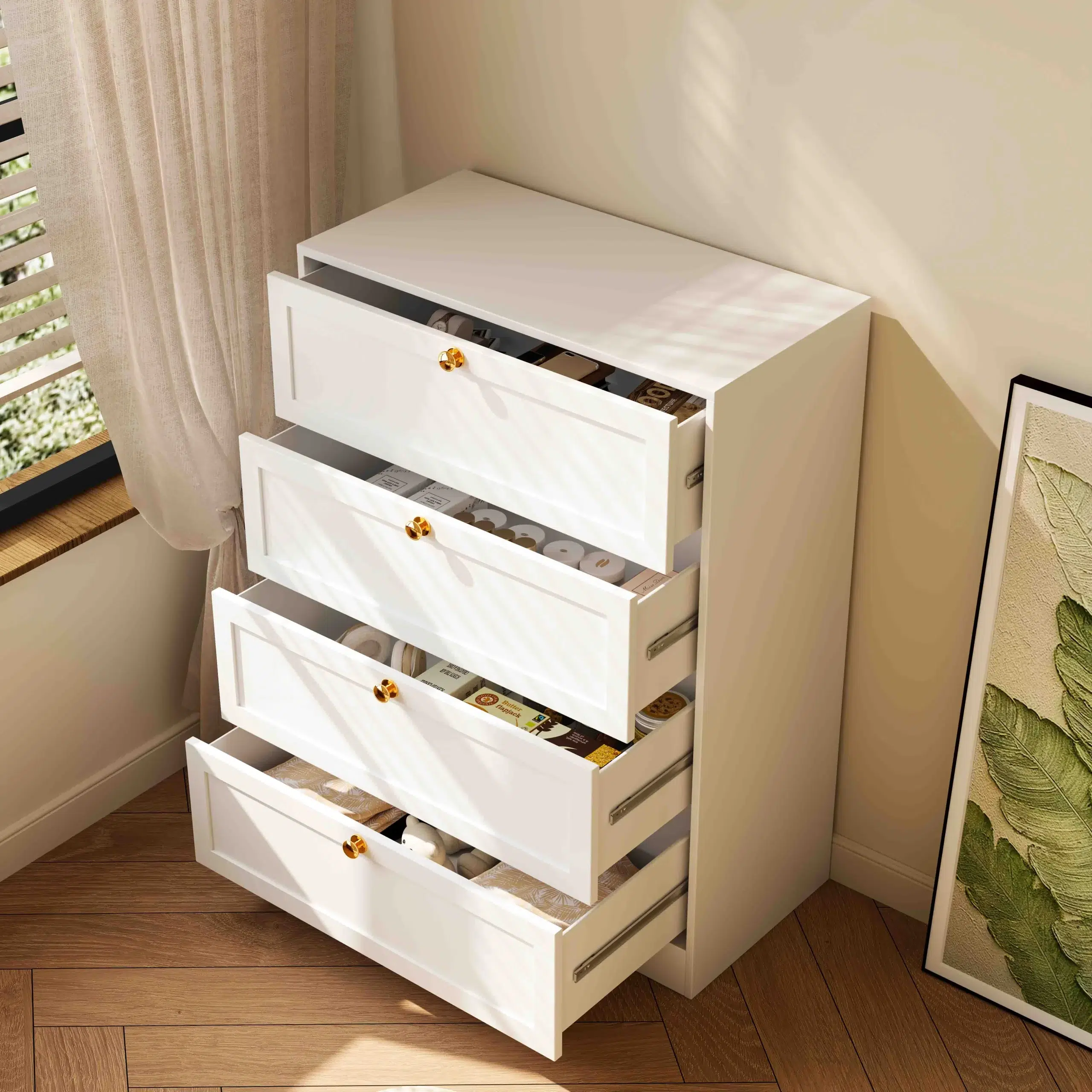 Drawer Cabinet provides different separate compartments.Handle option have metal, plastic material; Each drawer can load 20-40 KGs and fully extension ball-bearing sliding rail for smooth and quite opening and closing. The drawer cabniet fits in bedroom, study room, living room, etc.