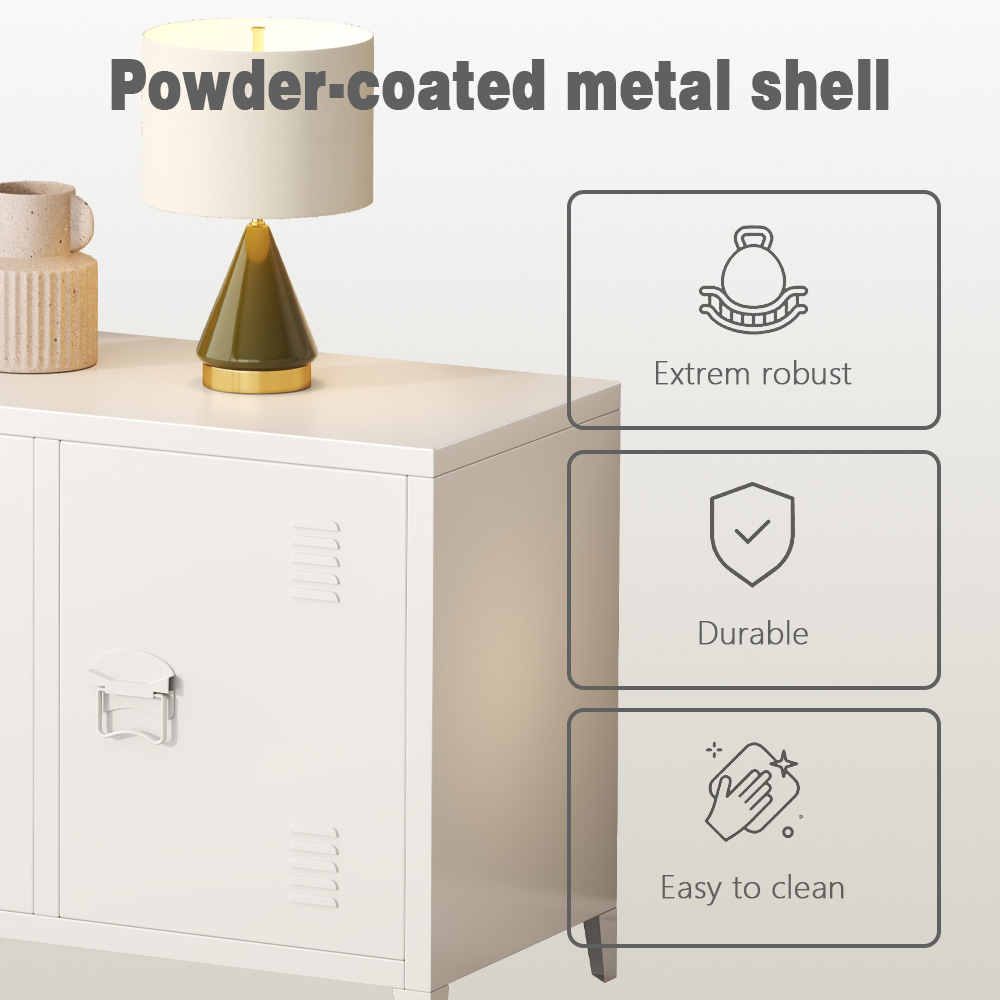 This metal storage cabinet boasts stylish, easy-to-grip handles, a waterproof metal top, and four adjustable stand feet to safeguard your floors from scratches. The adjustable feet are perfect for accommodating uneven surfaces. It is flexible and convenient to meet your needs for storing items of different sizes, heights and shapes.