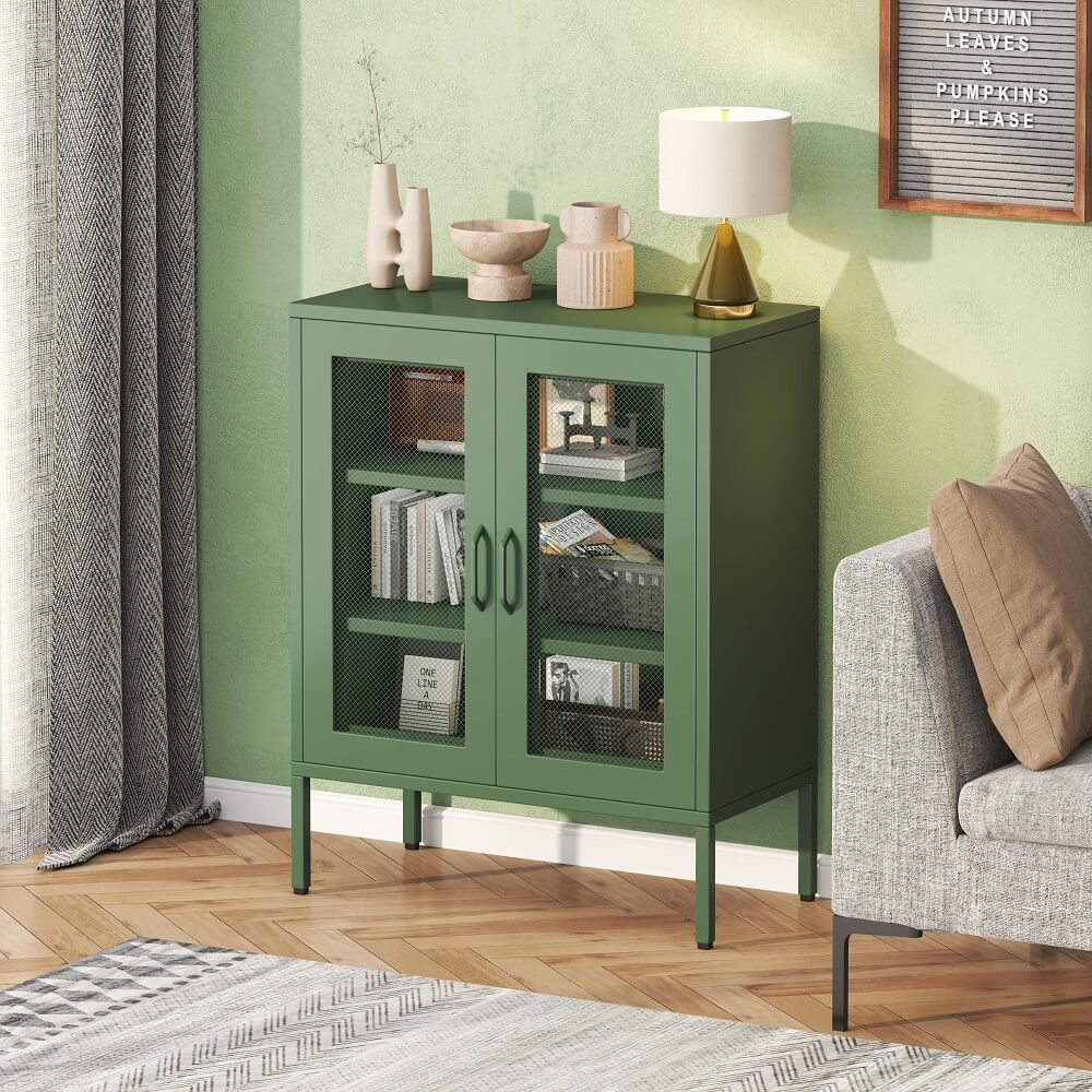 This metal storage cabinet boasts stylish, easy-to-grip handles, a waterproof metal top, and four adjustable stand feet to safeguard your floors from scratches. The adjustable feet are perfect for accommodating uneven surfaces. It is flexible and convenient to meet your needs for storing items of different sizes, heights and shapes.