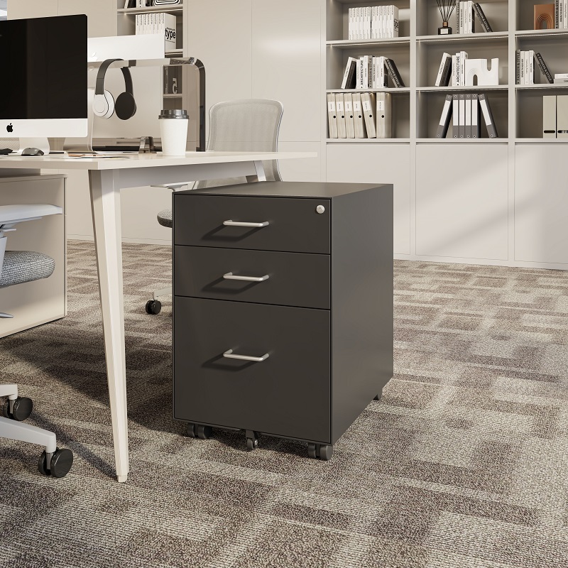 Mobile pedestal cabinet use high quality cold rolled steel, durable material, enhance cabinet structure. Surface use electrostatic powder coating, water-resistant and easy to clean.