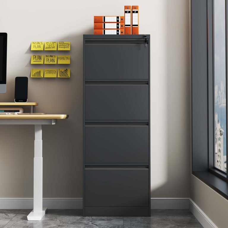 Vertical filing cabinet provides 2/3/4 drawers options. Each drawer has movable file bar for adapting hanging different sizes files. Easy-to-grip handle and fully extension ball-bearing sliding rail for smooth and quite opening and closing. The filing cabniet fits in office, study room, living room, etc.
