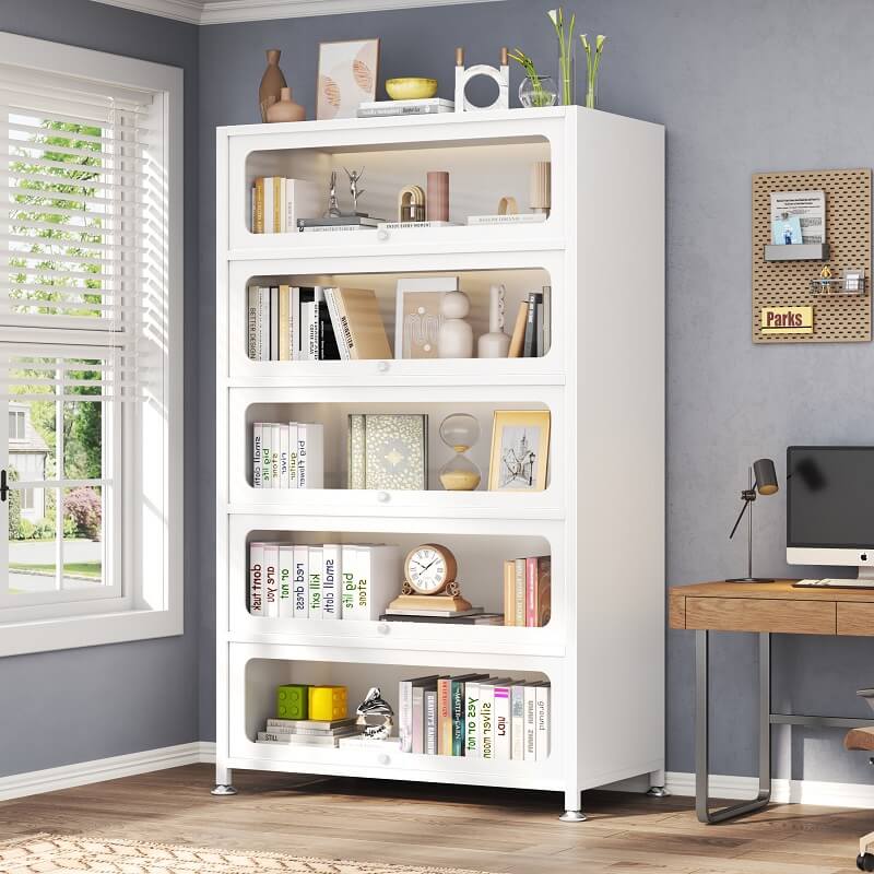 Steel bookcase provides different separate compartments. The adjustable shelf can be adapted different storage needs. Handle options have metal,plastic material; separation space can help you organize your book easily & quickly; different size bookcase has large saving space.