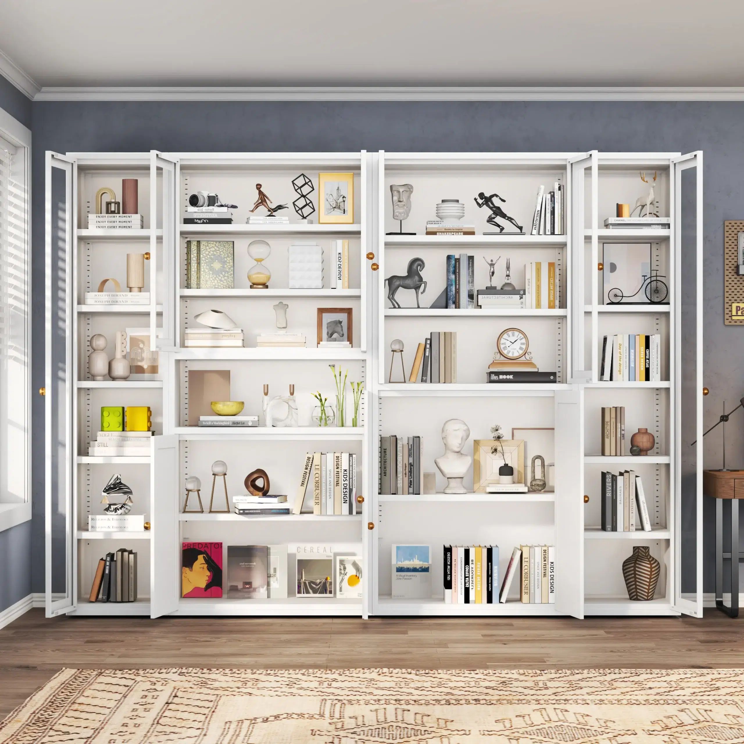 Our steel bookcase offer different generously sized and deep compartments, this bookcase provides ample space for storing personal belongings, work essentials, and tools in various settings like bedroom, living room, study room, children design, etc.