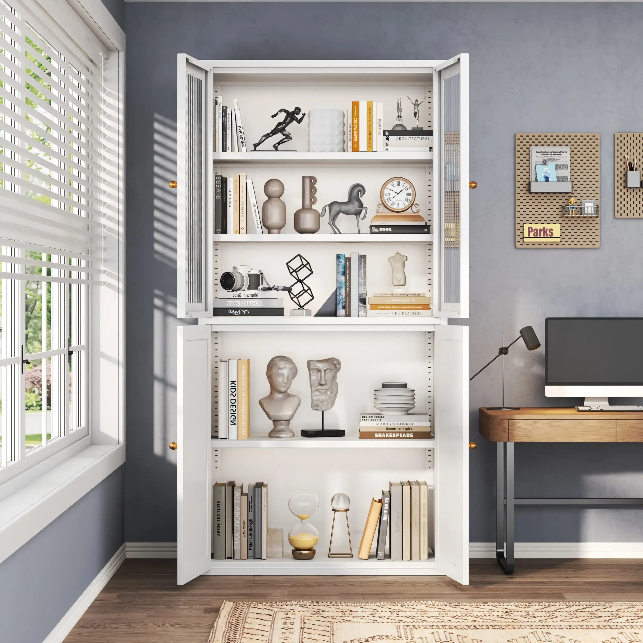 Our steel bookcase offer different generously sized and deep compartments, this bookcase provides ample space for storing personal belongings, work essentials, and tools in various settings like bedroom, living room, study room, children design, etc.