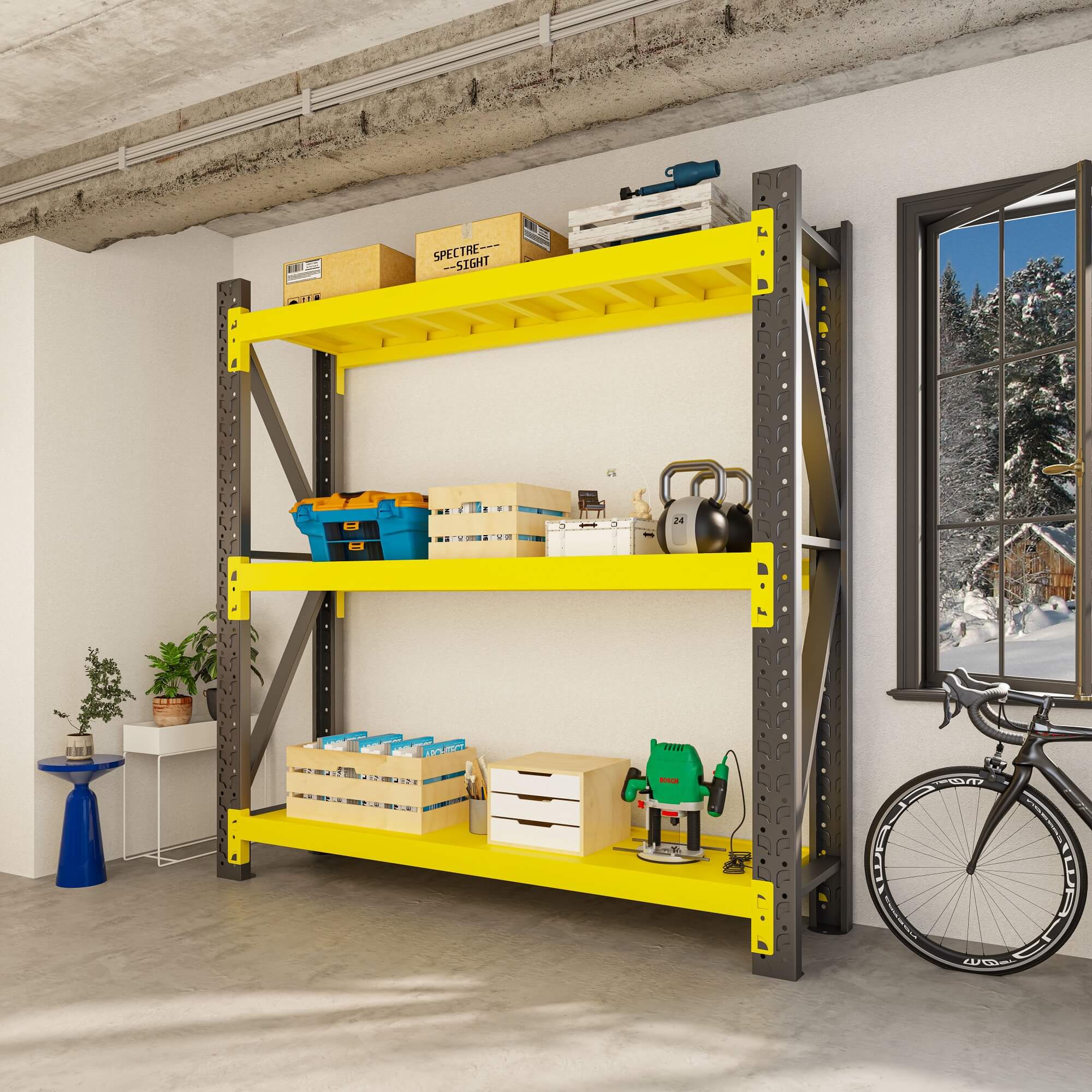 Metal storage rack shelves, heavy duty metal material, environmental surface coating, knock down structure, large loading capacity for each layer, use in different places.