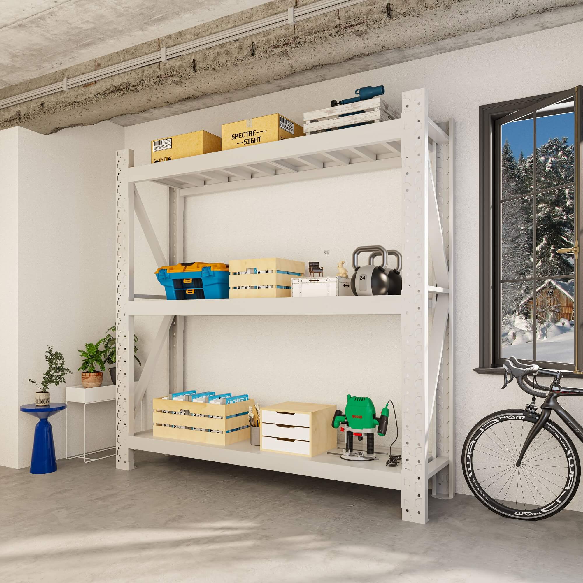 The heavy-duty storage rack designed to meet the demanding storage needs, suitable for industrial facilities, warehouse, basement and commercial settings. It is an ideal choice for a wide range of applications, such as warehouse material management, factory equipment storage, or logistic center goods stacking.